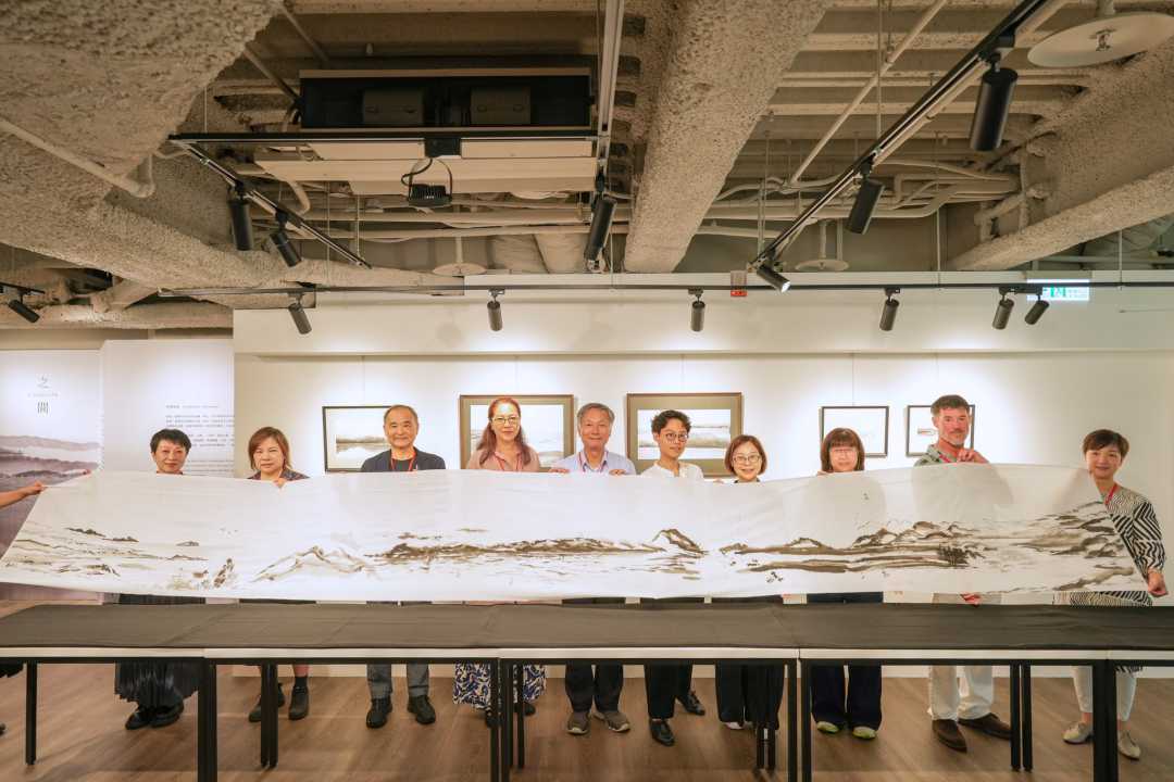 特別值得一提的是「共創時刻」,沈榮親自領筆,與中央氣象局前局長鄭明典、藝術家李安榮、Discovery頻道北亞區前總經理林東民、旺旺中時文化傳媒總經理林淑黛、頑石文創開發顧問公司創辦人程湘如、沈榮的母親葛曼麗、實踐大學設計學院院長許鳳玉、馬祖國際藝術島策展人陳敬寶、富邦美術館教育推廣組組長吳雨致聯手繪製一幅540公分的「靈性山水」共創長軸,象徵藝術跨越文化疆界的多元共鳴。