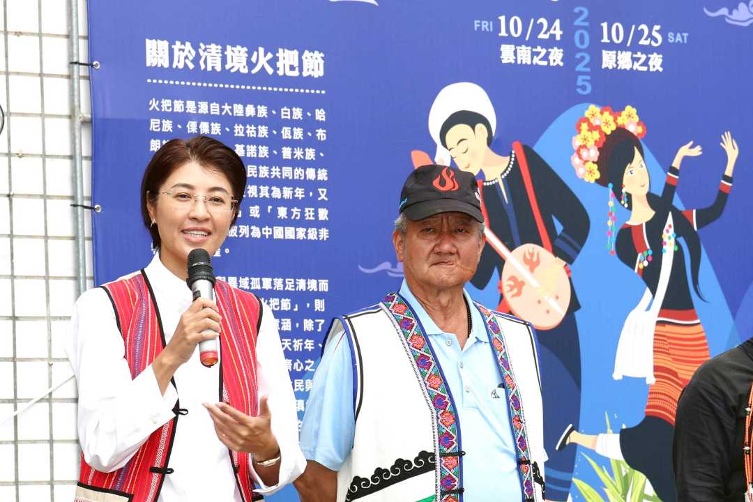 許縣長表示,南投有多元且豐富的文化底蘊,因此一直持續支持各民族或族群的文化慶典。她上任後就增加編列補助清境火把節的預算,很感謝交通部觀光署也共同補助擴大辦理,希望邀請更多民眾上山體驗不同的文化。將以布朗族彈唱為主題的2025清境火把節,24日的雲南之夜及25日的原鄉之夜都會清境國小舉辦,除了豐富的文化歌舞表演以外,也有趕街市集,各種特色文創小物琳琅滿目,也可以品嚐在地特色風味美食,歡迎大家前來體驗雲南美食及特色文化,以及在地的原住民文化與美食。