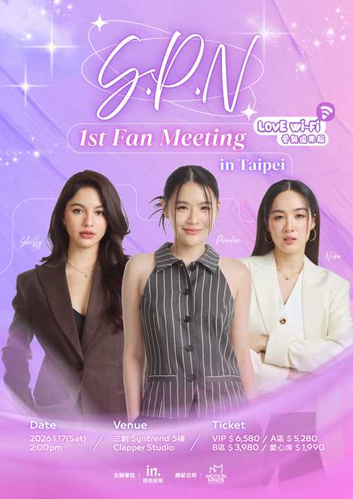 【記者 范至延 台北報導】真是「泰」稀有,創泰百GL(GIRL LOVE)見面會以三人的單數形式會粉絲紀錄!泰國知名製作公司Motion Minds Entertainment公司旗下的GL演技派組合Shelly Phetsai Chanrueng(Shelly)、Aom Pundao Panyabaramee(Pundao)與Neranuchara Lertprase(Neko),簡稱SPN,宣布即將帶著造成兩派粉絲論的人氣GL泰劇「Roller Coaster(雲霄飛車)」,訂於2026/1/17(六)於「台北三創Syntrend 5樓CLAPPER STUDIO展演廳」舉辦「2026 SPN 1st Fan Meeting in Taipei」的第一場海外見面會!SPN三位女神除了有著無暇臉蛋與姣好身材,雖然甫剛出道,但在公司嚴格訓練下演技不俗,而其中飾演女主角之一Air的Neko,是超人氣GL泰劇「Blank愛填滿空白」主角Yoko現實生活中的親姊姊,因此當「Roller Coaster(雲霄飛車)」公布她加入時,再加上她飾演因家族壓力下無奈分手的前任,更是瞬間造成社群訊息爆量,紛紛擔心這部作品「三選二」到底誰會落單?