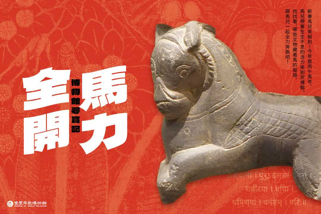 馬,在世界各地的宗教文化中,象徵速度、力量與重生的希望。今年馬年開春,宗博館別出心裁,以「馬」為線索,精心設計「九宮格尋寶任務」,在世界宗教展示大廳、金色大廳等不同宗教的展櫃文物或建築模型之中,尋找馬的蹤跡。
