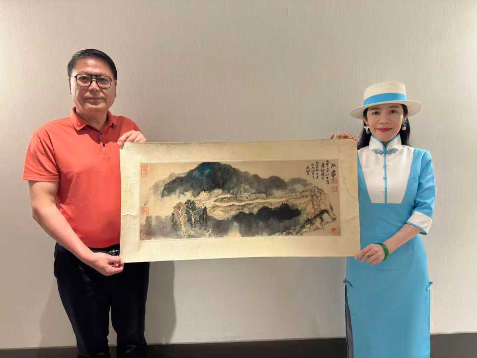 【記者 范至延 綜合報導】近日,張大千第三代入室弟子程曙東,與中國旗袍大使、台灣世界和平親善會理事長余淑琴於廈門會晤。會中,余淑琴展示由張大千贈予方天寶的潑墨山水畫,並與程曙東進行深入交流與鑑賞。