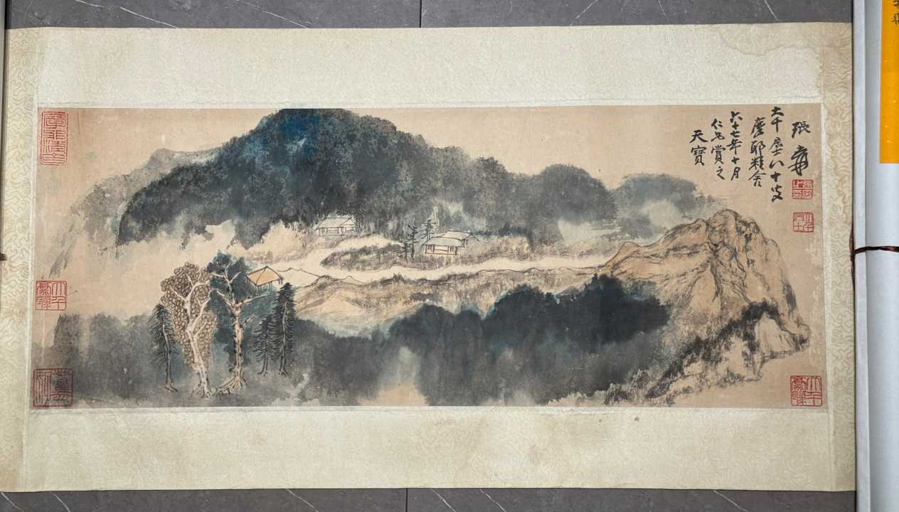 該幅畫作由台灣收藏家邱正忠先生珍藏。程曙東見到大千真跡,喜出望外,盛讚此作為難得一見的藝術精品,筆墨雄渾、氣韻生動,充分展現大師風範。兩岸友人齊聚一堂,共同賞畫,以書畫為媒,暢敘情誼,氣氛融洽。