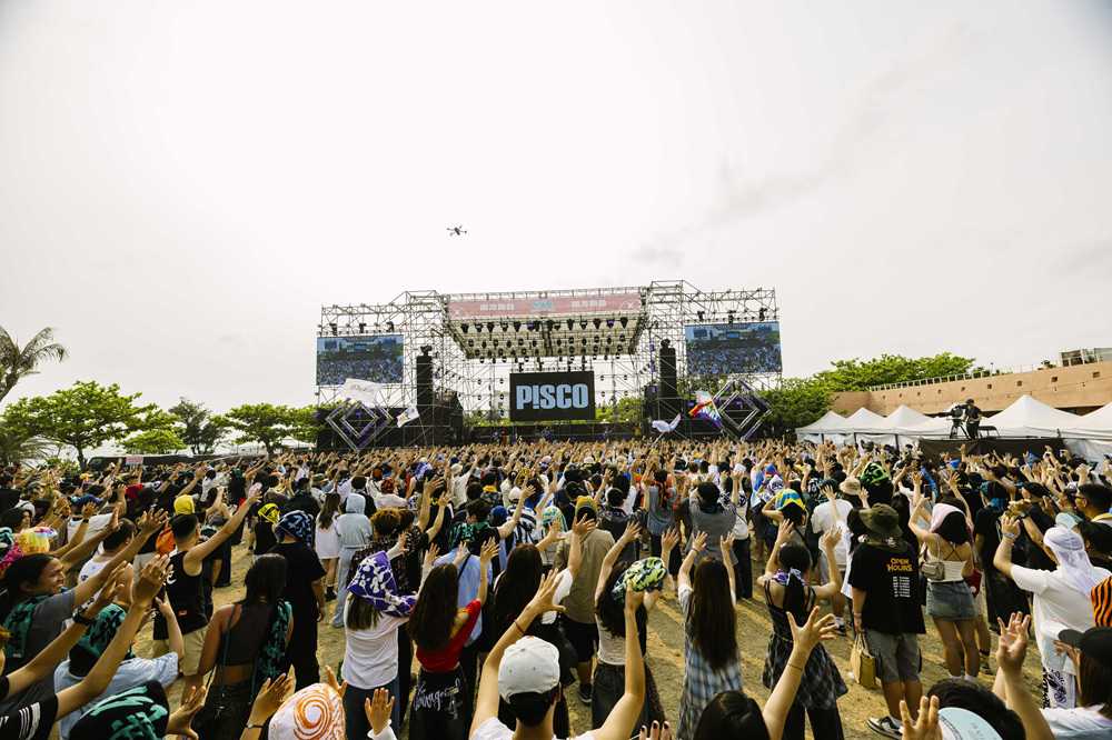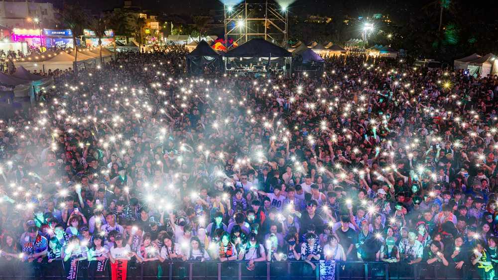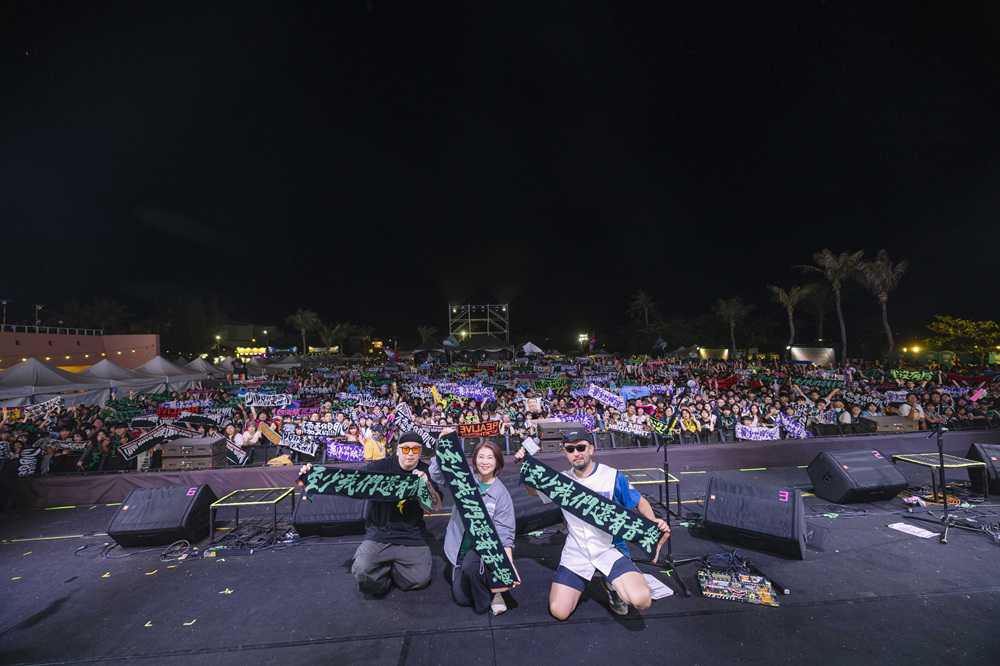 今日演出陣容堅強,首先由Sabrina胡恂舞與「JOGUMAN」揭開序幕,吸引許多年輕爸媽帶著孩子一同參與,展現音樂世代傳承的溫馨畫面,接續P!SCO聯手海洋家族帶動全齡唱跳氣氛,讓原本熱血的開圈氛圍,多了幾分童趣與歡樂,隨後怕胖團以熱血龐克節奏掀起萬人大合唱,讓大灣遊憩區瞬間成為一場震撼人心的戶外K歌盛宴。
