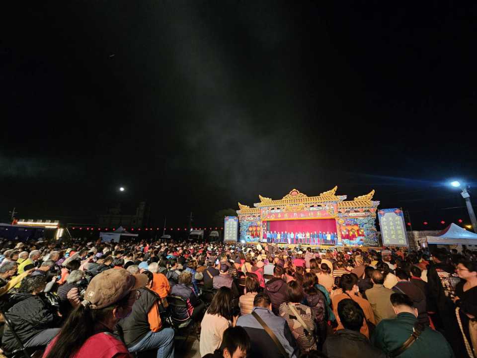 【記者 范凱榛 彰化報導】為慶賀溪州萬善祠創建50週年,迎接後續慶典活動的展開,彰化縣政府特別邀請臺灣知名歌仔戲團明華園戲劇總團,由無敵小生孫翠鳳領銜主演,於12月6日晚間在溪州萬善祠演出祈福大戲《蓬萊女神何仙姑傳奇》。現場吸引眾多鄉親與信眾到場共襄盛舉,縣府機要秘書張建豐代表縣長王惠美致上祝賀之意,祈願活動順利圓滿、香火鼎盛,並與現場鄉親一同欣賞精彩演出,共度充滿文化氣息的夜晚。