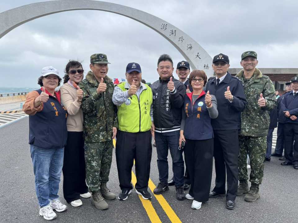 【記者 林影 澎湖報導】12月13日澎湖縣政府秋冬軍事主題旅遊活動「2025 澎湖大行軍」第二梯次在跨海大橋壯闊展開,再次吸引1,500名民眾、旅客與軍事迷熱情參與。縣長陳光復、陸軍澎湖防衛指揮部陳俊源中將與多位貴賓蒞臨現場,活動在國軍官兵隊伍的帶領下,自西嶼端啟程,迎著東北季風逆風前行,以腳步橫越跨海大橋,親身體驗冬季海島的壯麗與澎湖特有的風景魅力,場面盛大、氣勢十足。